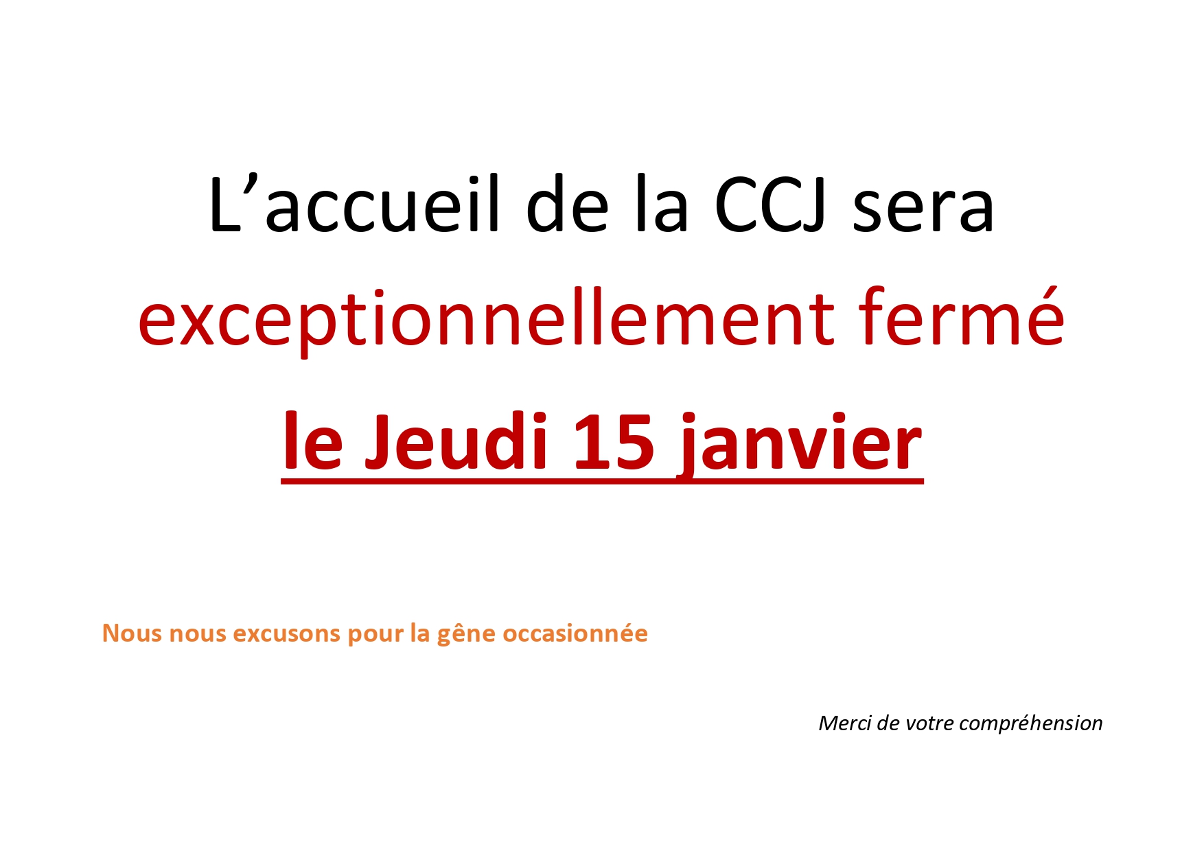 Fermeture exceptionnelle de l'accueil jeudi 15 janvier